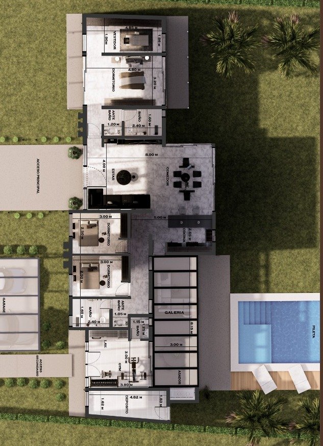 Este proyecto esta desarrollado en una sola planta, con posibilidades de ampliación a futuro y materiales de primera calidad. Se trata de una construcción desde cero que tiene una duración aproximadamente de 10 meses, con llave en mano.