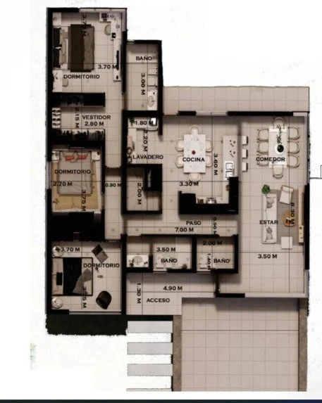 Este proyecto esta desarrollado en una sola planta, con posibilidades de ampliación a futuro y materiales de primera calidad. Se trata de una construcción desde cero que tiene una duración aproximadamente de 10 meses, con llave en mano.